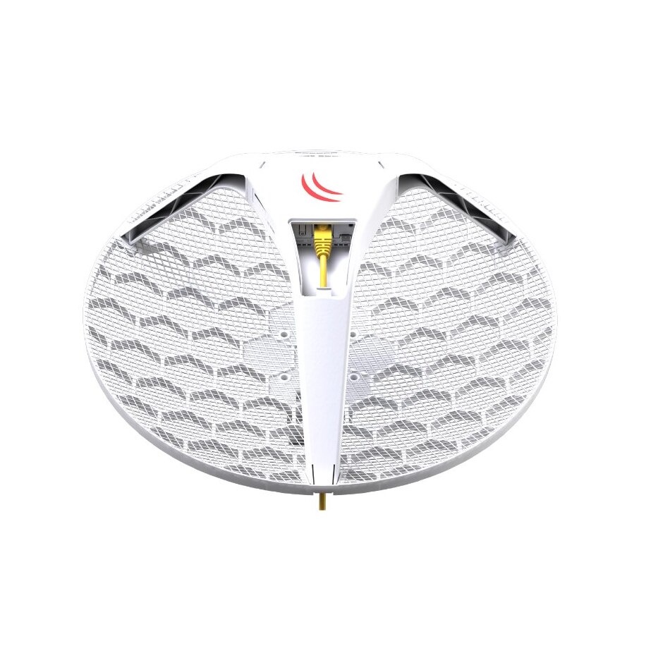 LHG XL HP5 with 5GHz 27dBi antenna, Dual Chain High Power 802.11an wireless, 600MHz CPU, 64MB RAM, 1x LAN, POE, PSU, RouterOS L3