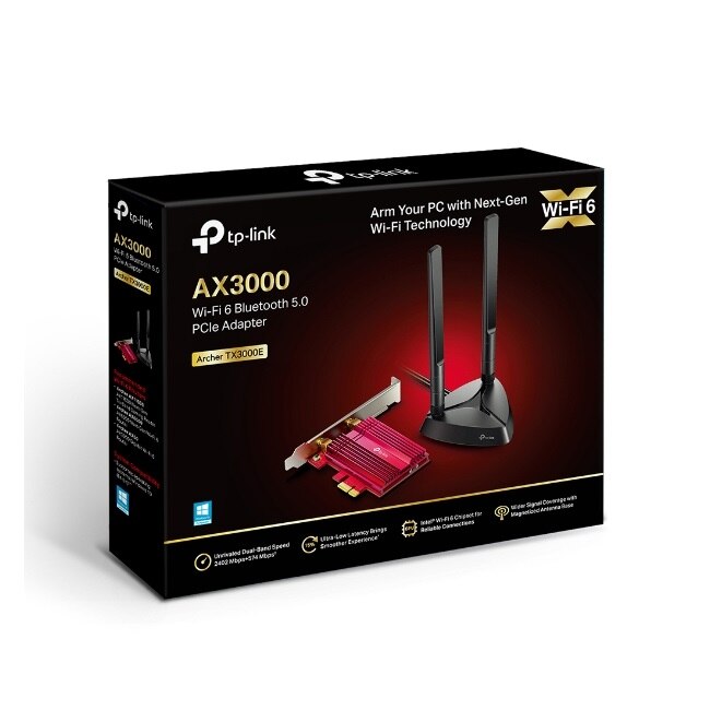 The very latest Wi-Fi 6 standard guarantees extreme speed, ultra-low latency, and uninterrupted connectivity. Utilizing the Wi-Fi 6 foundation, Archer TX3000E is designed to liberate your gaming from cables and fully optimize your gameplay. Discover the missing component of your gaming arsenal!