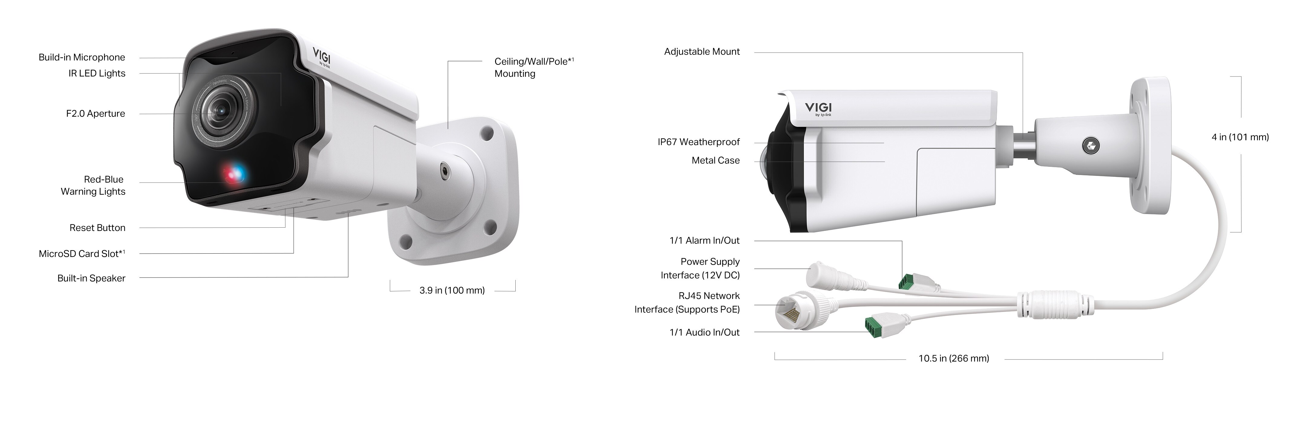 | Package Contents | • VIGI Network Camera • Quick Start Guide • Waterproof Cable Attachments • Mounting Accessories |