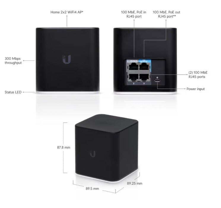 Ubiquiti Networks introduces the airCube, a cost-effective wireless access point for use in your customer deployments. With a compact design and integrated 24V PoE passthrough, the airCube is a home Wi-Fi access point designed to interoperate with airMAX CPEs and is available in two models. The airCube's attractive design means it can be positioned anywhere in the room, improving Wi-Fi performance. Use the intuitive U Mobile app for iOS and Android to install and configure airCube. Innovative Super Antenna provides wide-area coverage beyond regular Wi-Fi access points. Management options feature a graphical user interface designed for streamlined setup and control.