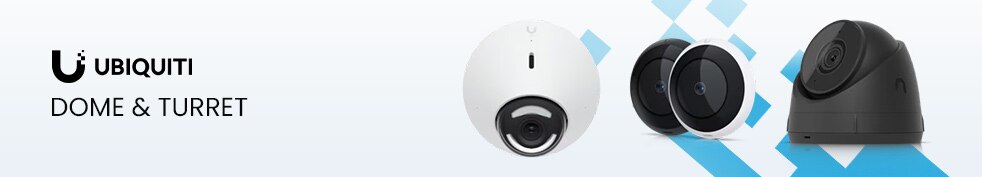 The Dome and Turret are ultra-compact, tamper-resistant, and weatherproof cameras ideal for indoors and monitoring large, public areas. Powered by PoE, Ubiquiti cameras feature 2K (4MP) resolution, ultra-wide viewing angle (102.4°), 30m (98 ft.) IR night vision, AI event detections, and built-in microphone and speaker. Its Dome camera with a 5MP CMOS sensor offers improved low-light performance and has integrated IR LEDs for crystal clear day and night vision. Moreover, the PTZ camera with a fisheye lens and pan-tilt-zoom functionality offers full 360° surveillance. ISP Supplies is an official distributor of Ubiquiti Networks, offering a variety of its certified Dome Turret at the best value.